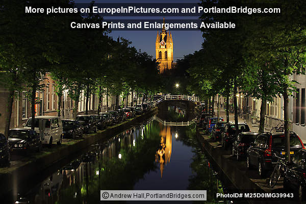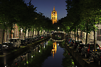 Delft Old Church, Canal, Reflection, Night