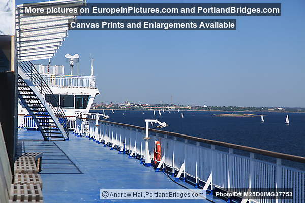 The Eckerö ferry from Tallinn to Helsinki was huge but comfortable (lots of cars and big trucks came with us below decks). I took the elevator up to the top deck, which had a sky bar and some tables and camped out at a table in some shade. (There are small “non-smoking areas that the smokers seemed to relish ignoring.) It was warm in the sun on deck but also extremely windy on deck.