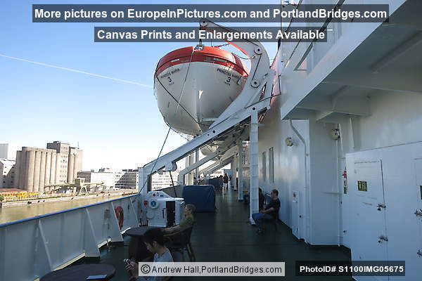 I was able to check in with the St. Peter Line immediately upon arrival from Tallinn, because the St. Peter ferry desk is in the same building as Eckerö – very convenient. I checked in, got my boarding card, etc. and then had about two hours to kill before the 18:00 departure of the Princess Maria ferry to St. Petersburg. (But I needed to be on board by 17:30 and wanted to be on board sooner than that.) There’s almost nothing around west terminal in Helsinki; at the moment, the whole area is a big building zone with construction cranes everywhere. There is a little mall across the street from the ferries with fast food (Subway, Hesburger the “McDonalds of the Baltics”, etc.). I opted to walk a little further to a real McDonalds. There are luggage lockers right in the ferry terminal (where you can leave your bags for a few days if need be e.g. to avoid dragging all your stuff to St. Petersburg if you are coming back). I opted to drag my bags to McDonalds, but I’m used to doing that.
