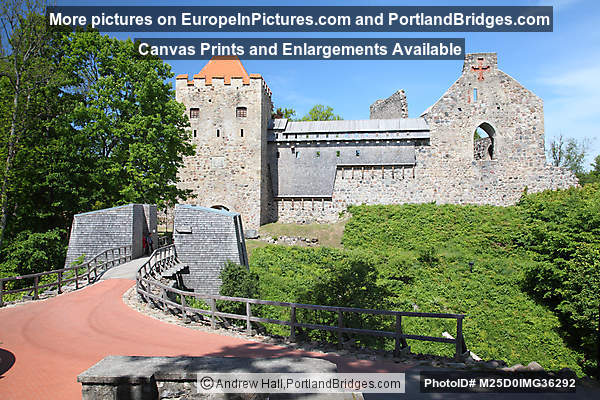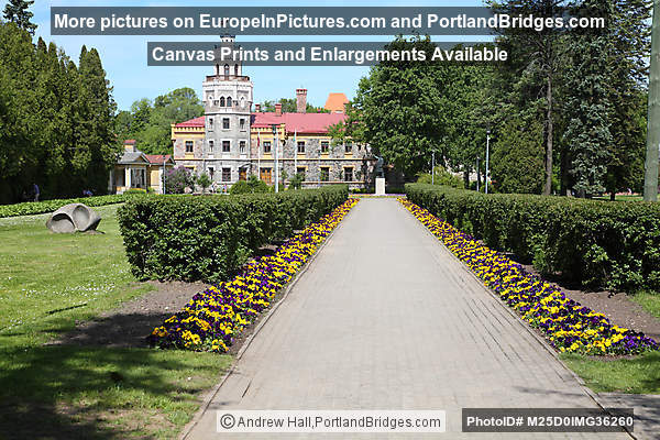 Sigulda is a pleasant town – not amazingly picturesque or anything. The main appeal seems to be that it’s at the edge of Gauja National Park. I walked (not exactly hiked because I was largely on sidewalks along streets) to one of the castles and to a recreation area high above the river. One of the attractions of this “hike” is to take a cable car high over the river valley for the view. But I could see part of the view of the river and didn’t think it was so amazing. So I decided to hike back to the train station and head on to Cēsis.