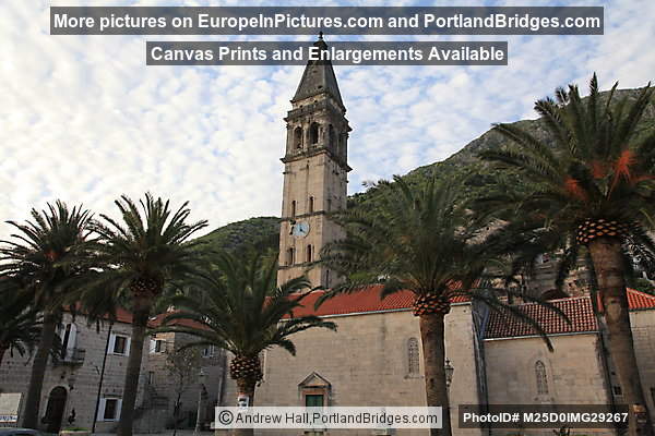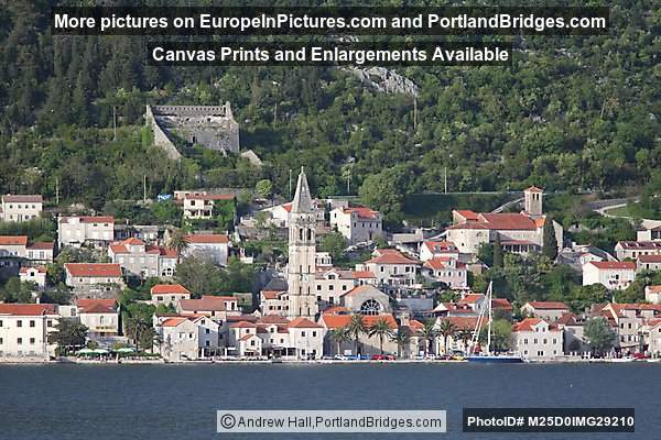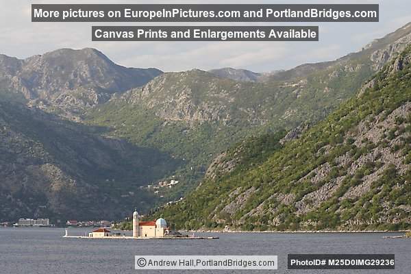 and you get various viewpoints on the Church of Our Lady On the Rocks on one of the islands as you drive around the bay. The best viewpoints may depend on the light and the time of day. The view of the Church of Our Lady from Perast itself is great, probably best in the morning, if you can get there.