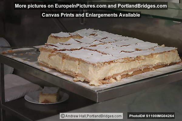 The meal was OK – probably better than another take-away pizza. On the walk back stopped at cafe that specializes in kremsnita, a kind of custard cake Samobor is known for (similar to what you find in Bled, Slovenia ), and took a piece back to the hotel for dessert.